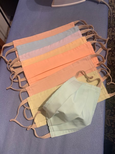 Now that the sewing bug has bitten me, I’ve decided to try another style of face mask — one that has no pocket for a filter, and no casing with ties. Instead it has pleats and an elastic to go around the ears. It is possibly a bit less complex.